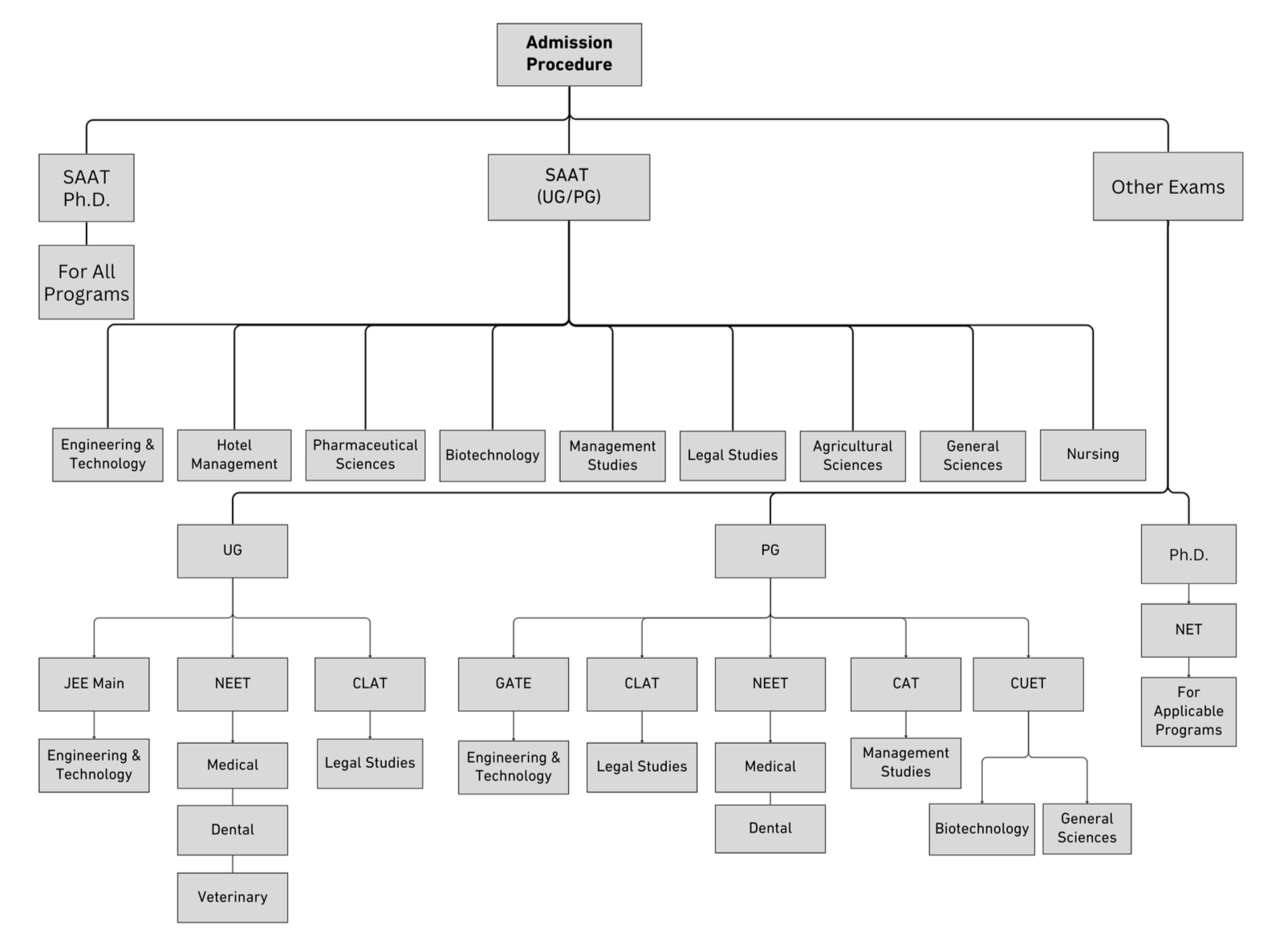 NOTE : At any time during the course of study, if it is found that the student is not satisfying the minimum eligibility criteria for admission into a particular course as prescribed by the SAAT information brochure and rules laid down by other statutory bodies, the candidate’s admission will be cancelled. He/She cannot claim the same in court of law. Hence, candidates are requested to make sure that they fulfill all the criteria before seeking admission.